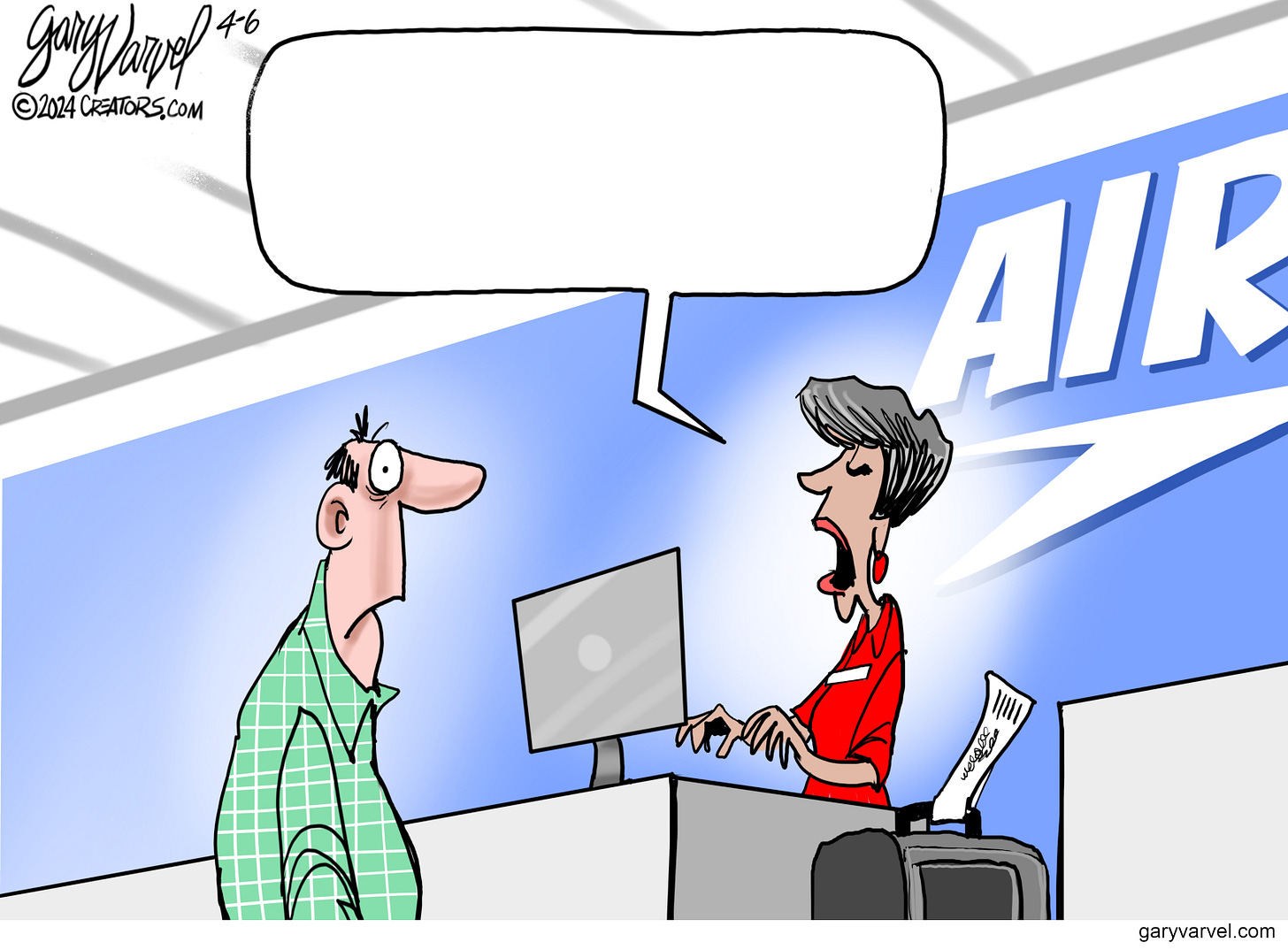 HUMOR ME: Fix my cartoon with a snarky remark. Email your entries to gary@garyvarvel.com. Winners announced in Friday’s newsletter for paid subscribers.